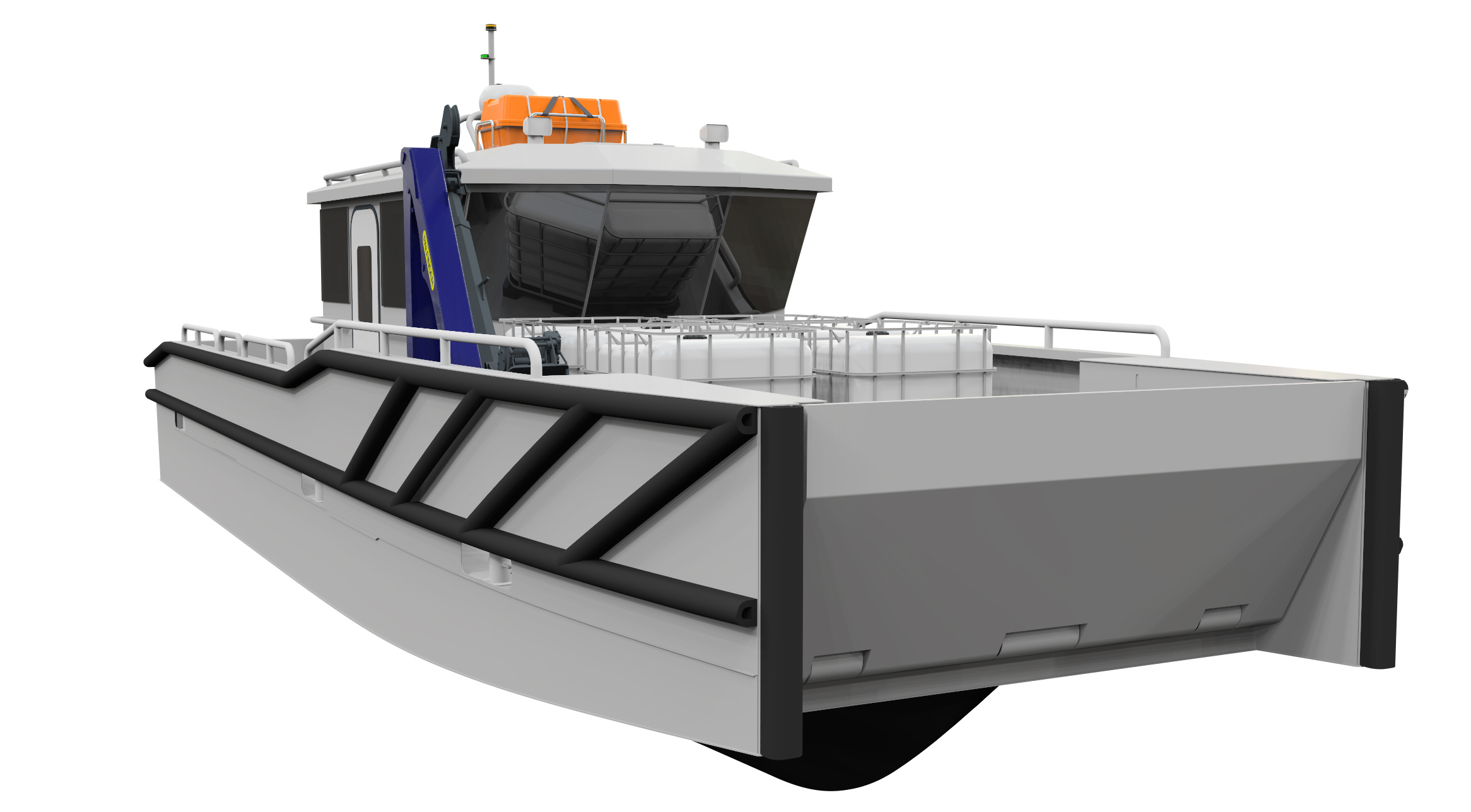 In response to calls for greater manoeuvrability and operational versatility, Chartwell has delivered a market first design, with the vessel set to be fitted with two OXE diesel outboard engines. A spare engine can be carried onboard, allowing for emergency replacement offshore if required. Diesel engines have lower emissions than petrol for this operational profile, but Chartwell’s configuration offers the flexibility to easily install electric outboard motors and batteries when the technology matures – future proofing the vessel against more stringent emissions requirements.